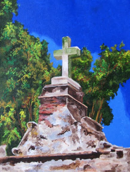 The cross at the top of the Santa Barbara Mission - done for the A Day Not Wasted July challenge. Lee does some fantastic photography - my painting doesn't come near the light & color that his photo has. But I did enjoy painting this - there's something about painting rocks, stones & bricks that I find comforting. I chose to zoom in on the cross in the photo - but if you click the link & head over, you will see that the photo has a great deal more going on. In fact, it really is more than 1 smaller image within the overall, so there is quite a lot of choice available to everyone.